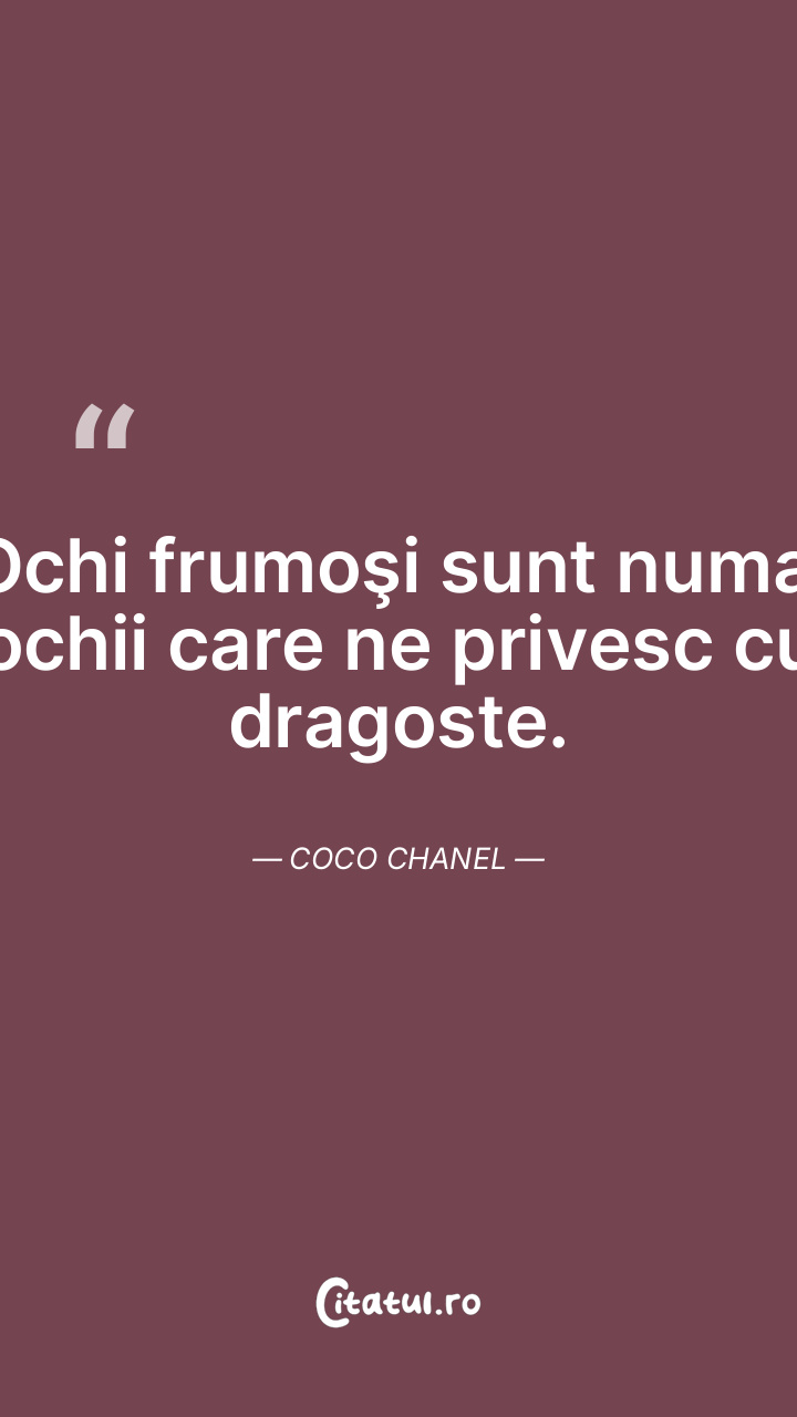 Ochi frumoşi sunt numai ochii care ne privesc cu dragoste. Coco Chanel