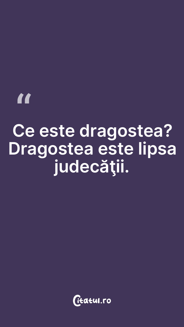Ce este dragostea? Dragostea este lipsa judecăţii....