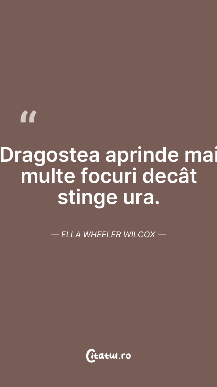 Dragostea aprinde mai multe focuri decât stinge ura. Ella Wheeler Wilcox