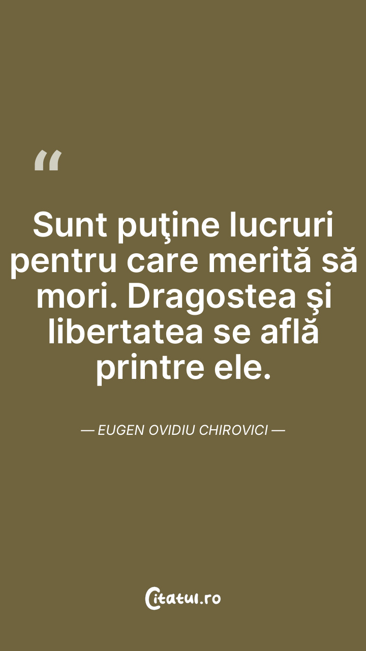 Sunt puţine lucruri pentru care merită să mori. Dragostea şi libertatea se află printre ele. Eugen Ovidiu Chirovici