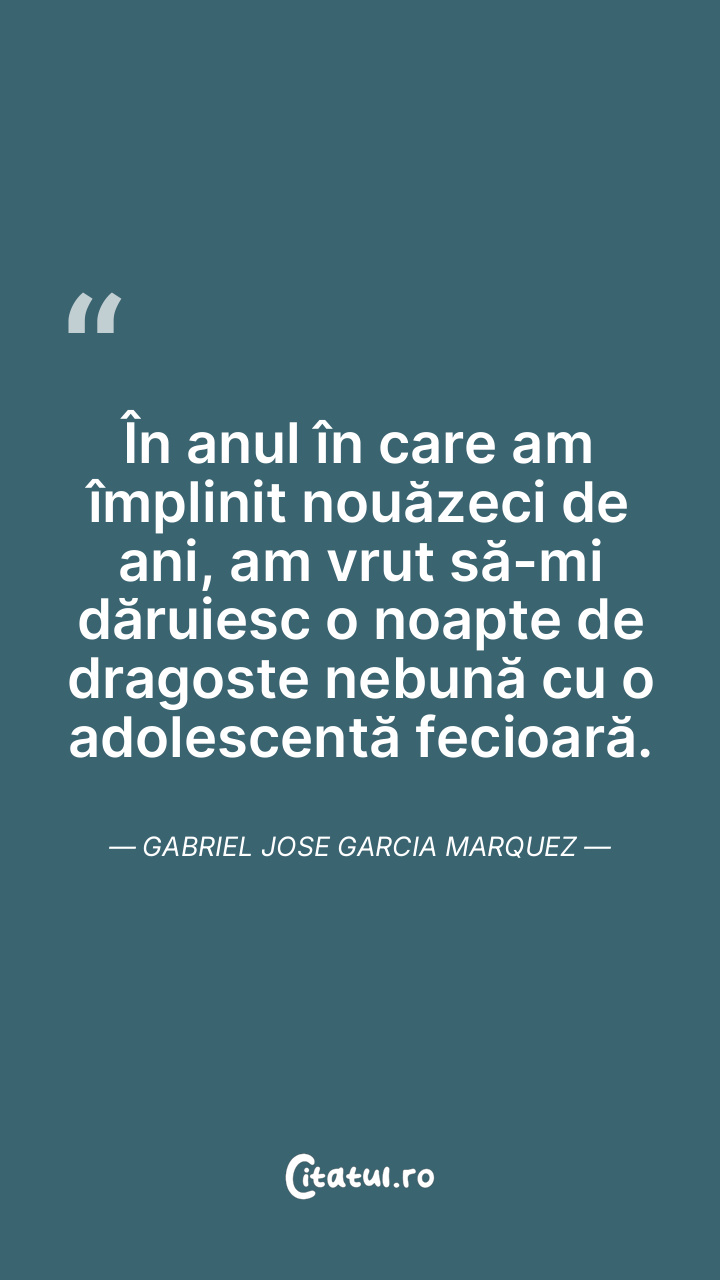 În anul în care am împlinit nouăzeci de ani, am vrut să-mi dăruiesc o noapte de dragoste nebună cu o adolescentă fecioară. Gabriel Jose Garcia Marquez