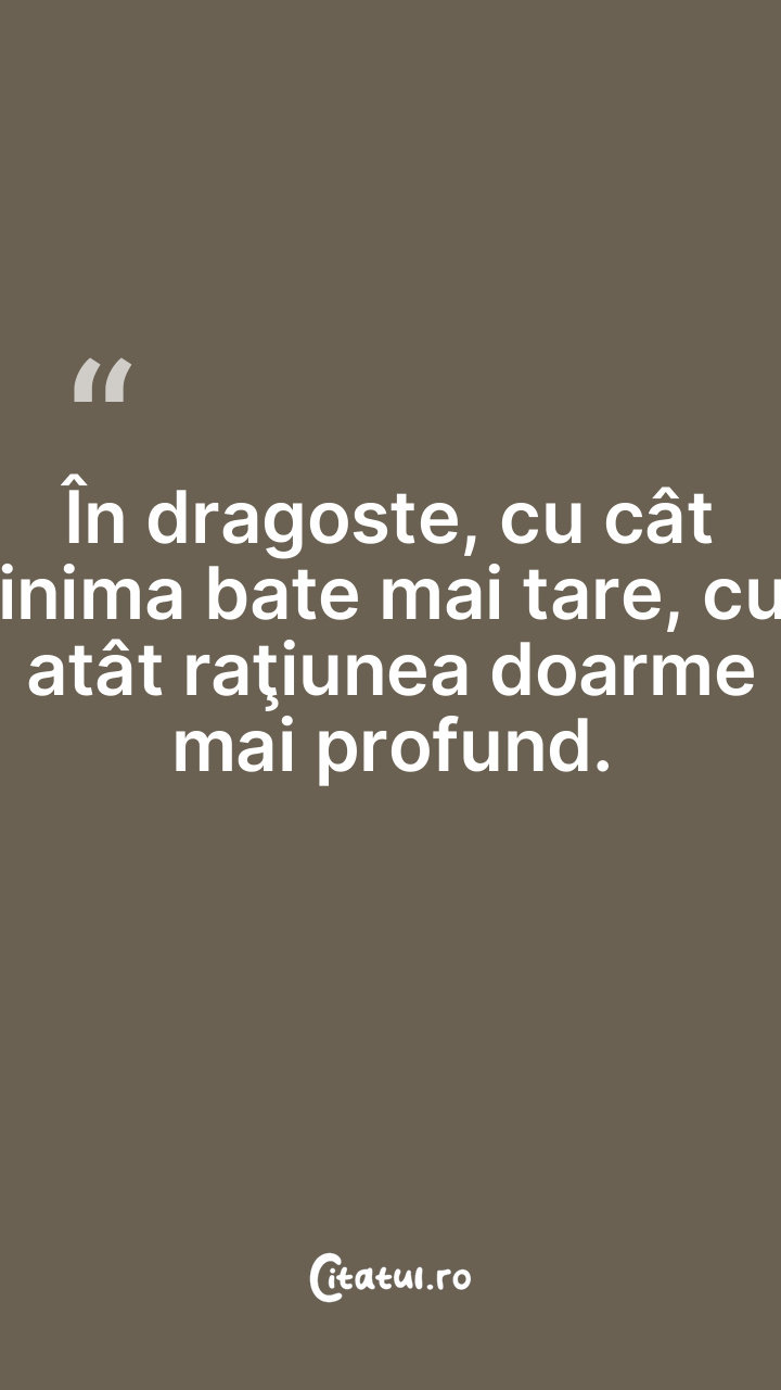 În dragoste, cu cât inima bate mai tare, cu atât raţiunea doarme mai profund.