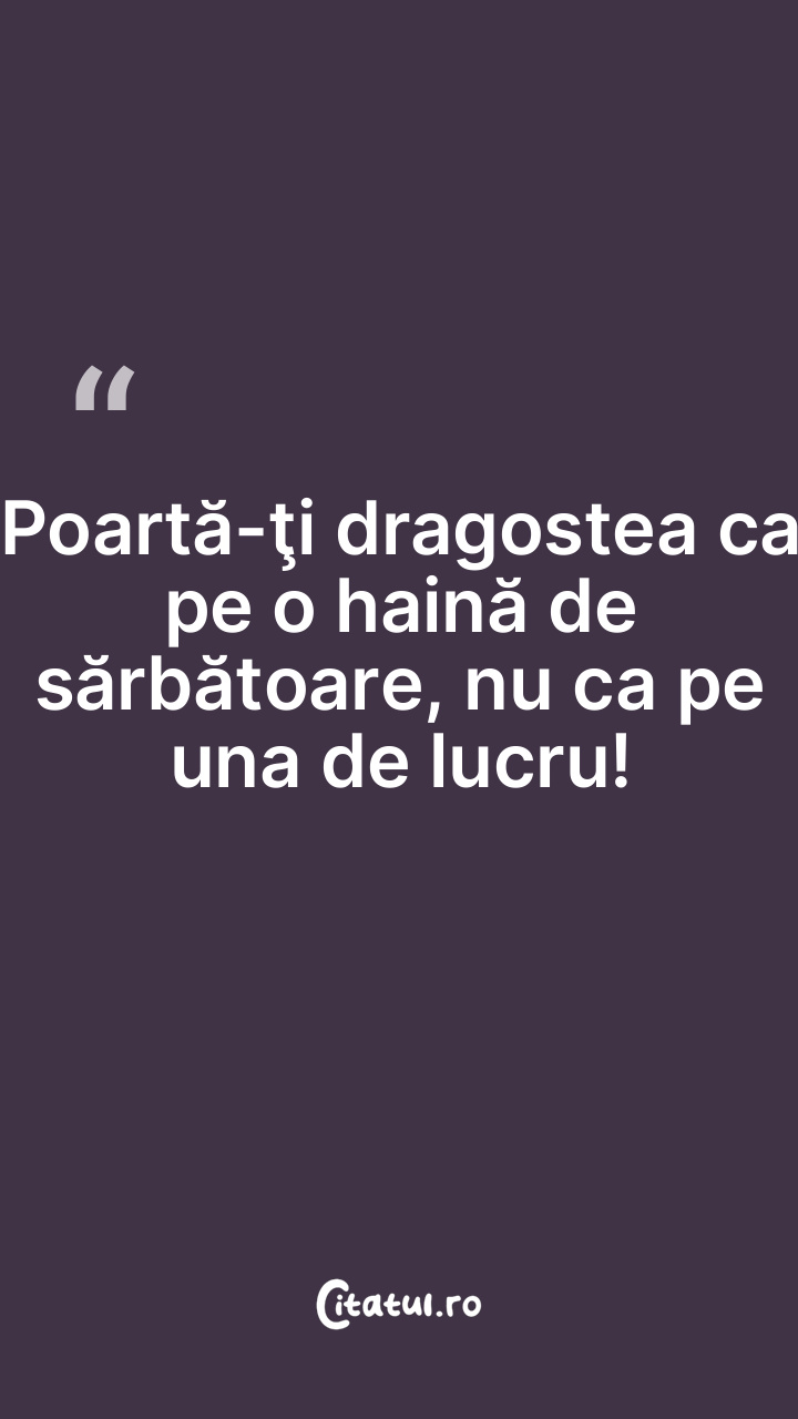 Poartă-ţi dragostea ca pe o haină de sărbătoare, nu ca pe una de lucru!