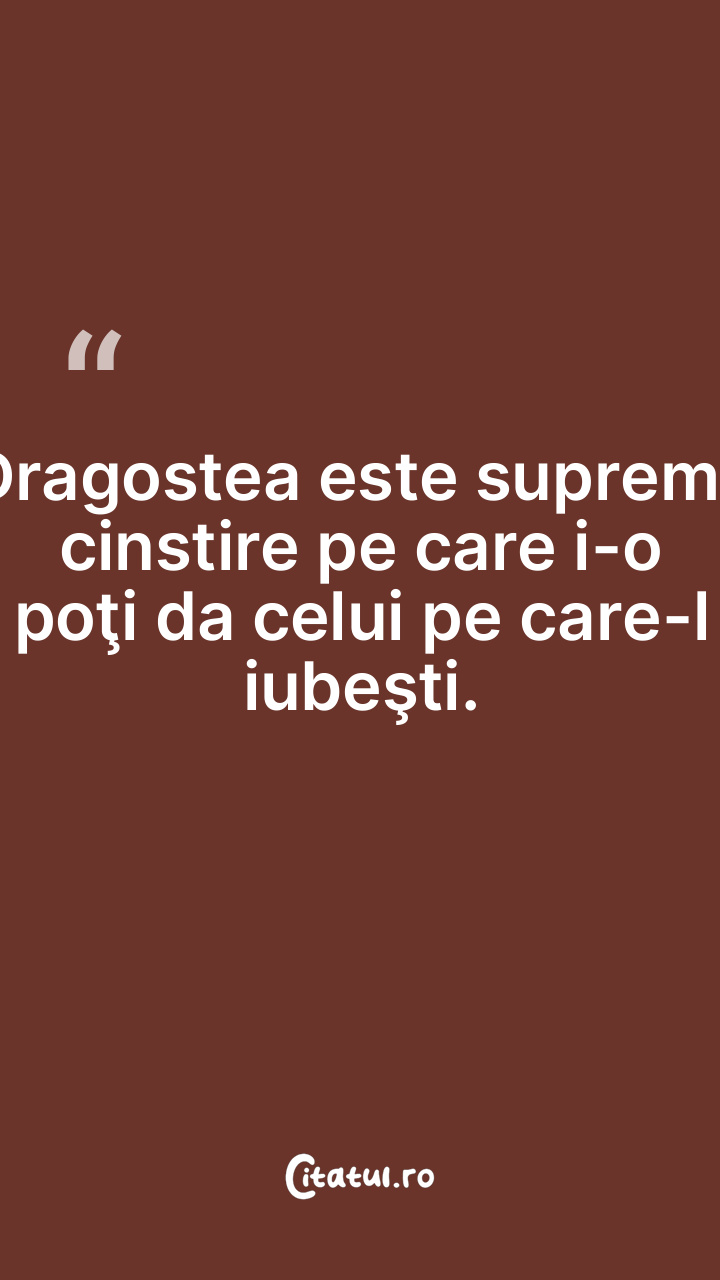 Dragostea este suprema cinstire pe care i-o poţi da celui pe care-l iubeşti.