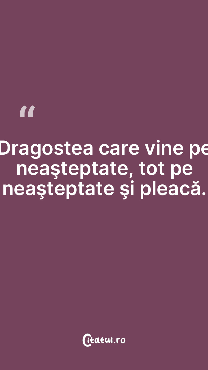 Dragostea care vine pe neaşteptate, tot pe neaşteptate şi pleacă.