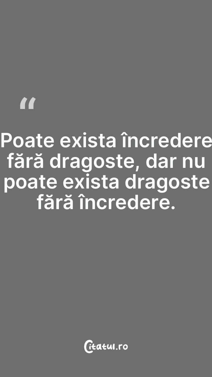 Poate exista încredere fără dragoste, dar nu poate exista dragoste fără încredere.