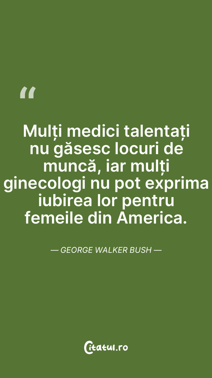 Mulți medici talentați nu găsesc locuri de muncă, iar mulți ginecologi nu pot exprima iubirea lor pentru femeile din America. George Walker Bush