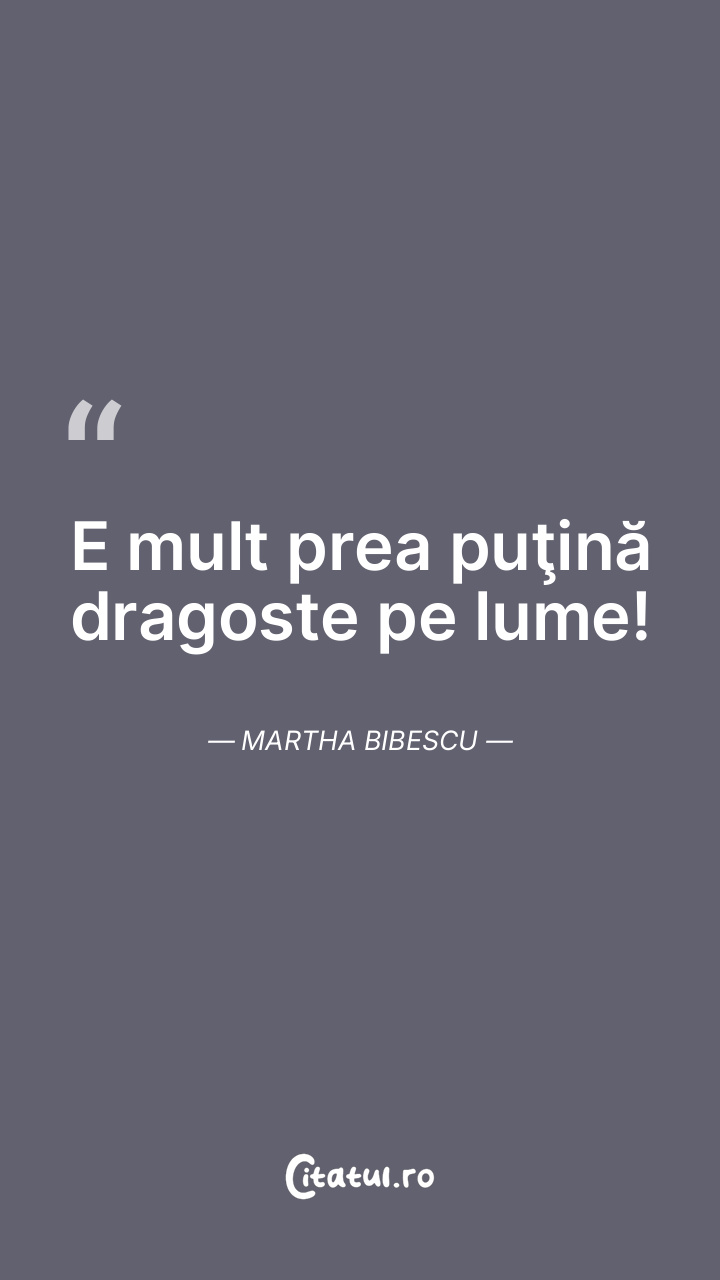 E mult prea puţină dragoste pe lume! Martha Bibesc...