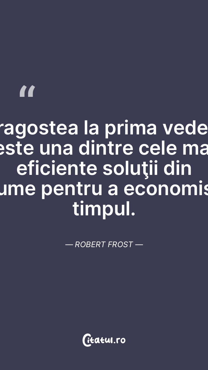 Dragostea la prima vedere este una dintre cele mai eficiente soluţii din lume pentru a economisi timpul. Robert Frost