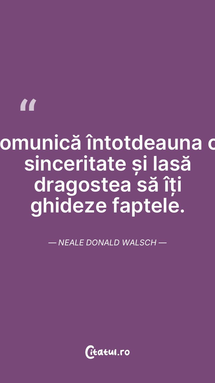 Comunică întotdeauna cu sinceritate și lasă dragostea să îți ghideze faptele. Neale Donald Walsch