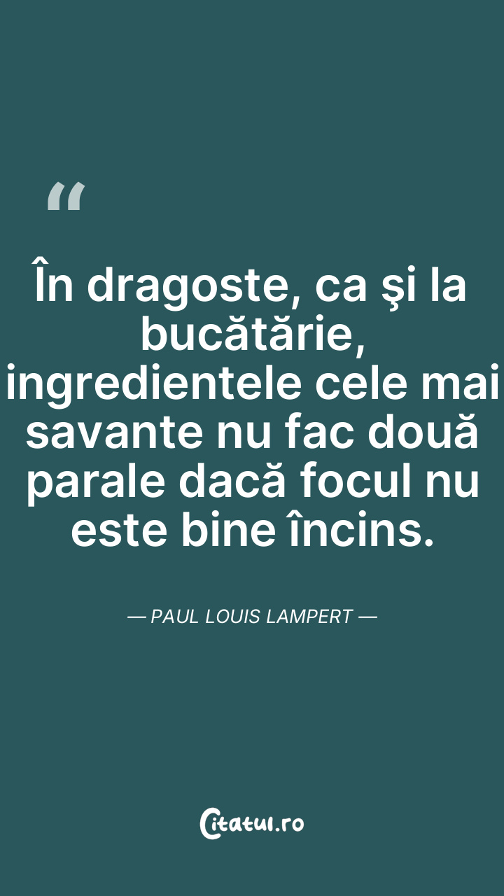 În dragoste, ca şi la bucătărie, ingredientele cele mai savante nu fac două parale dacă focul nu este bine încins. Paul Louis Lampert
