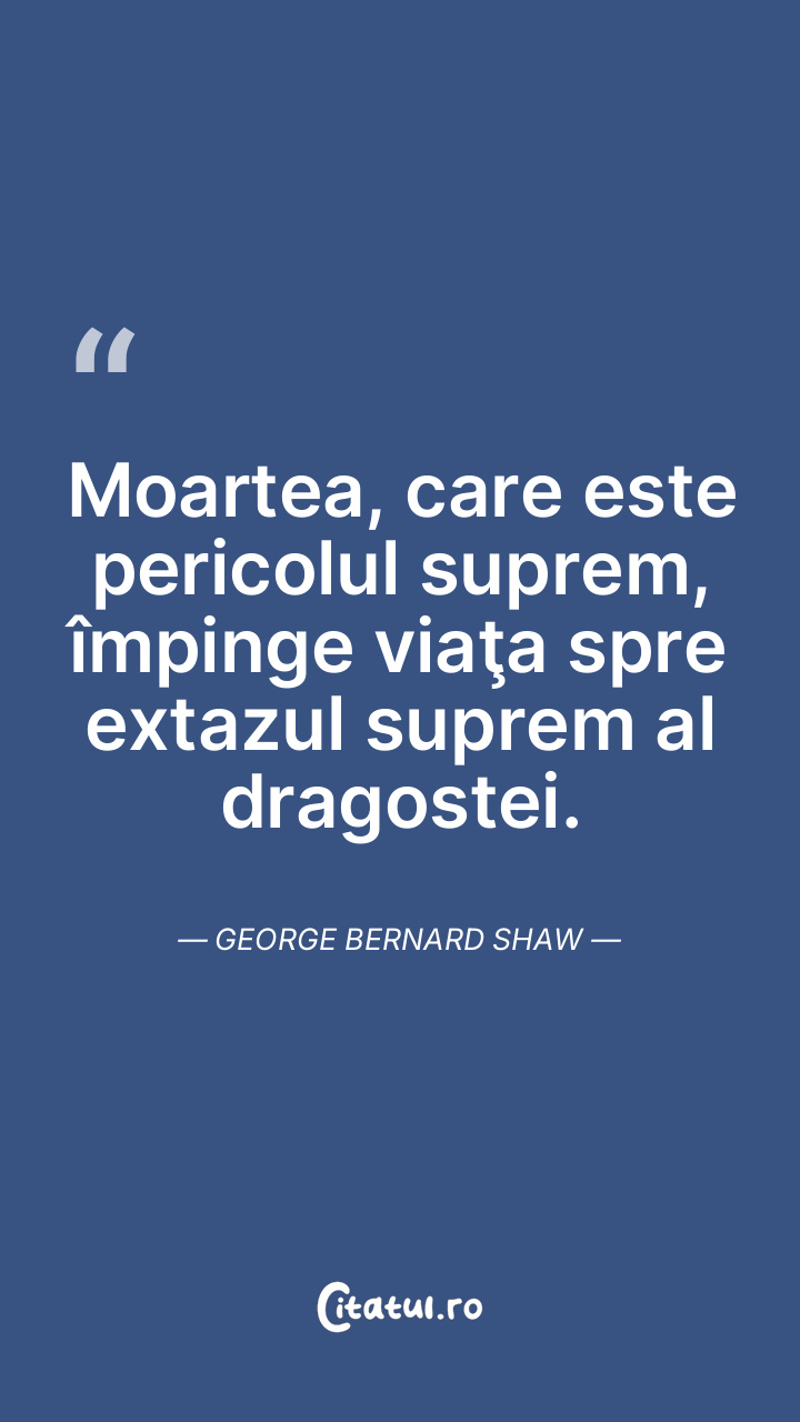 Moartea, care este pericolul suprem, împinge viaţa spre extazul suprem al dragostei. George Bernard Shaw