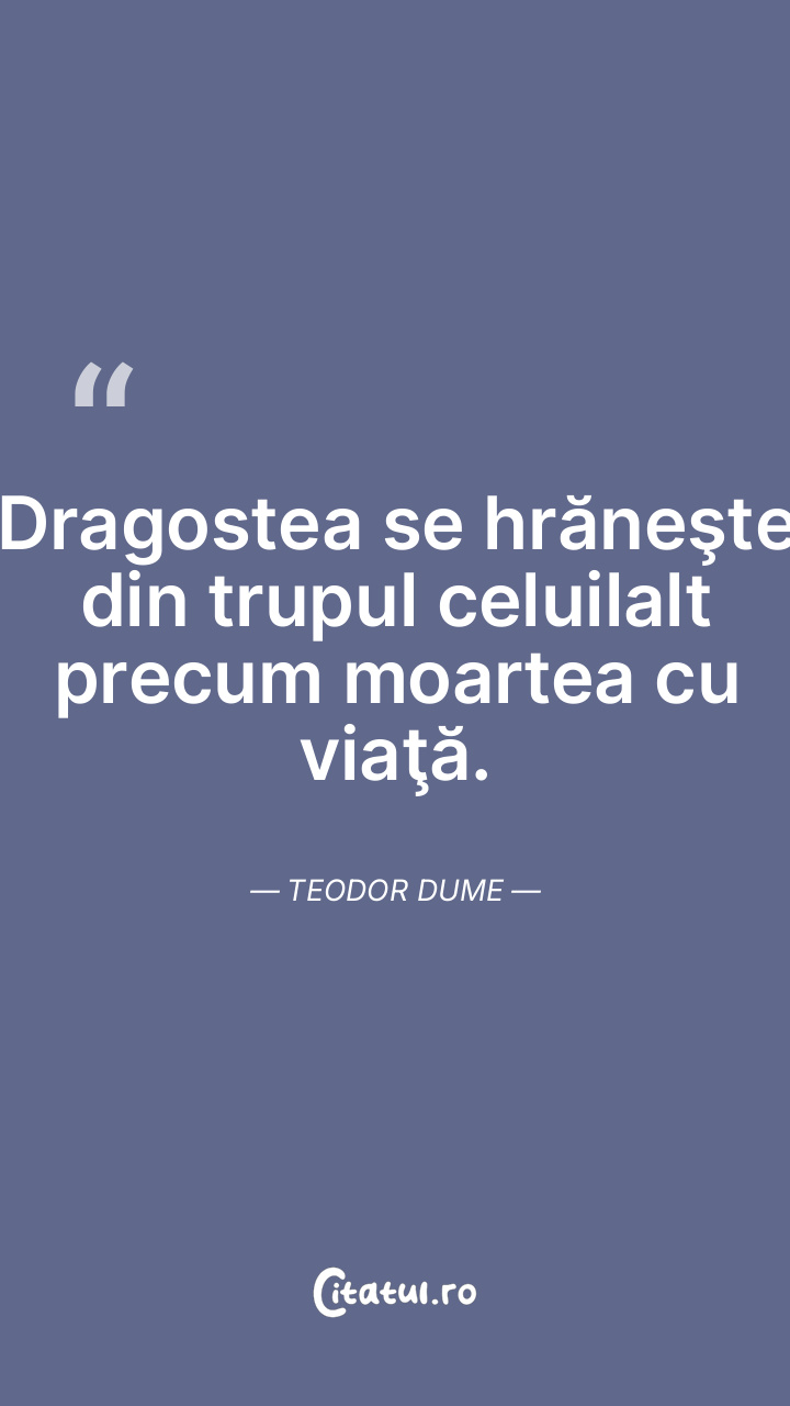 Dragostea se hrăneşte din trupul celuilalt precum moartea cu viaţă. Teodor Dume
