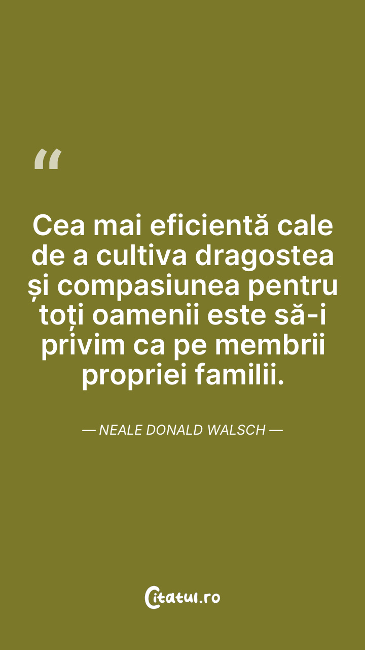 Cea mai eficientă cale de a cultiva dragostea și compasiunea pentru toți oamenii este să-i privim ca pe membrii propriei familii. Neale Donald Walsch