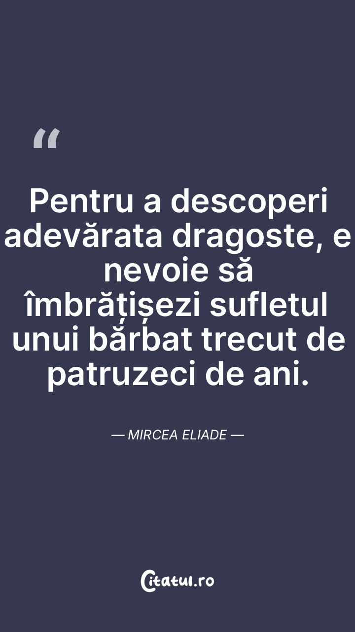Pentru a descoperi adevărata dragoste, e nevoie să îmbrățișezi sufletul unui bărbat trecut de patruzeci de ani. Mircea Eliade