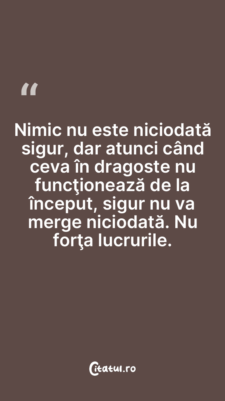 Nimic nu este niciodată sigur, dar atunci când ceva în dragoste nu funcţionează de la început, sigur nu va merge niciodată. Nu forţa lucrurile.