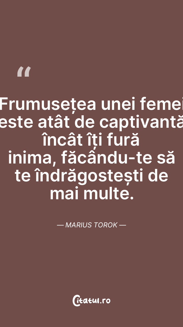 Frumusețea unei femei este atât de captivantă încât îți fură inima, făcându-te să te îndrăgostești de mai multe. Marius Torok