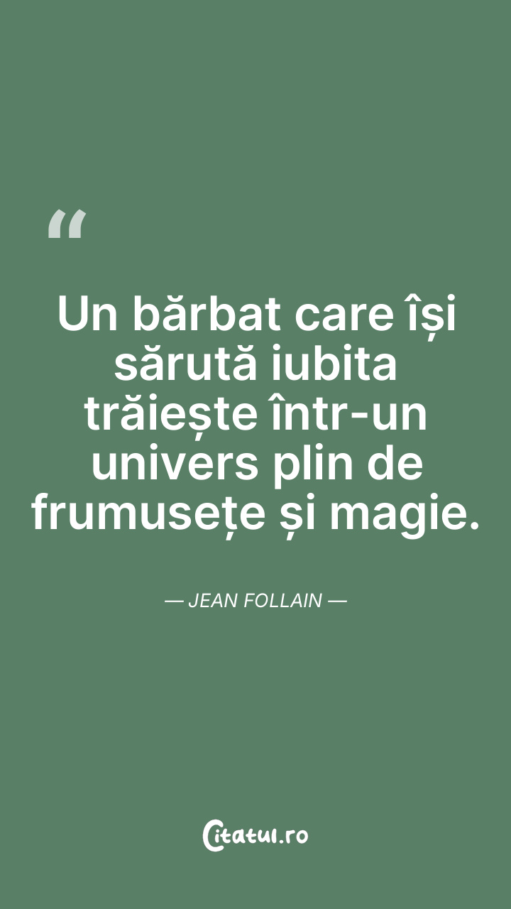 Un bărbat care își sărută iubita trăiește într-un univers plin de frumusețe și magie. Jean Follain