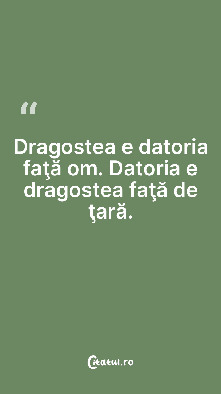 Dragostea e datoria faţă om. Datoria e dragostea faţă de ţară.
