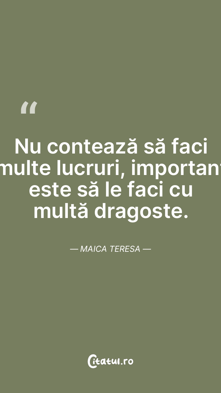 Nu contează să faci multe lucruri, important este să le faci cu multă dragoste. Maica Teresa