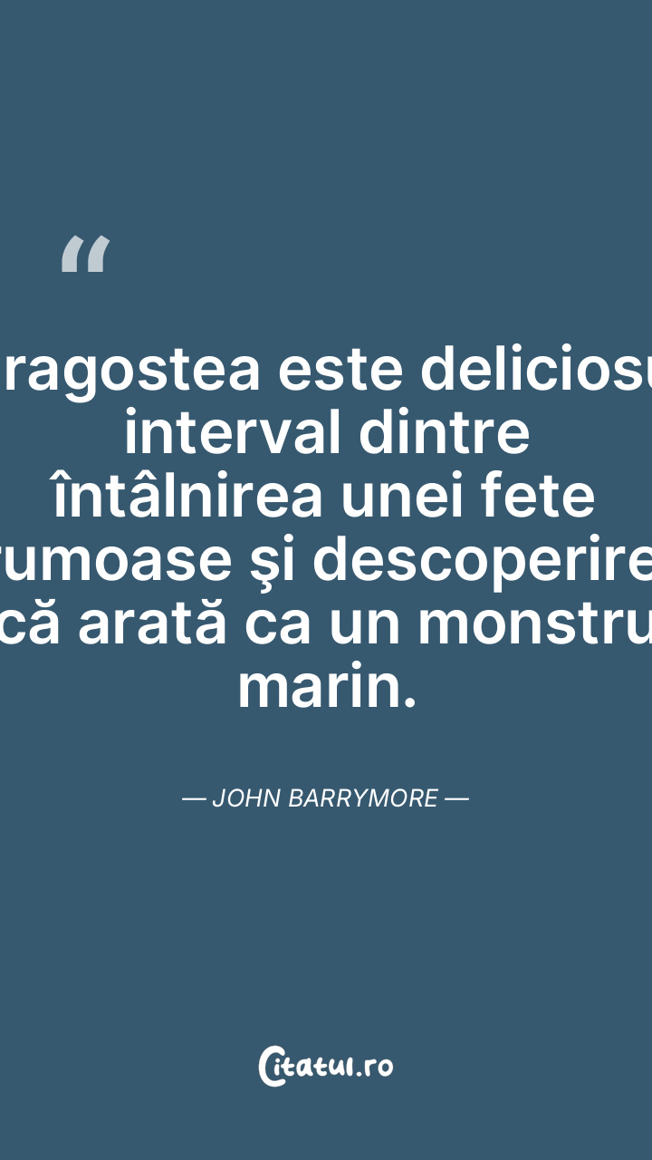 Dragostea este deliciosul interval dintre întâlnirea unei fete frumoase şi descoperirea că arată ca un monstru marin. John Barrymore