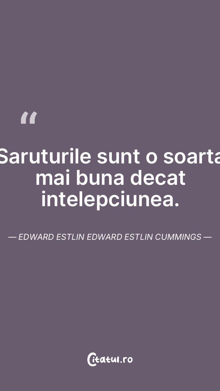 Saruturile sunt o soarta mai buna decat intelepciunea. Edward Estlin Edward Estlin Cummings