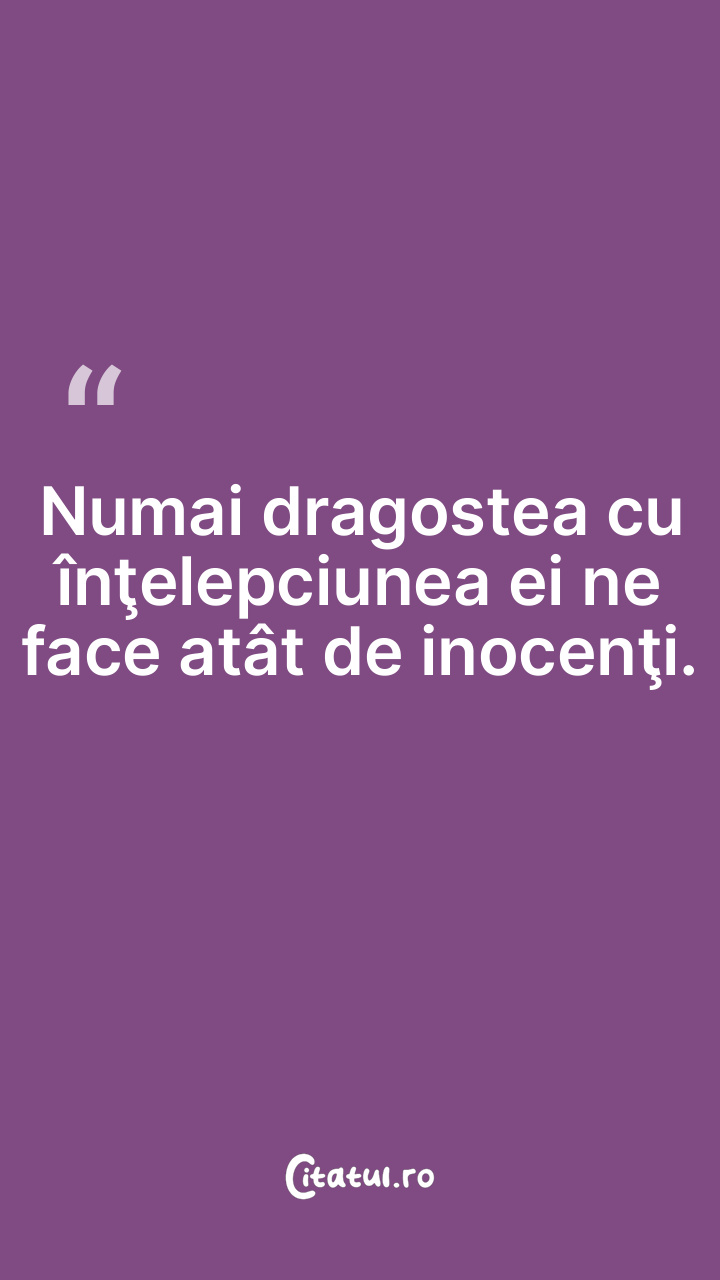 Numai dragostea cu înţelepciunea ei ne face atât de inocenţi.