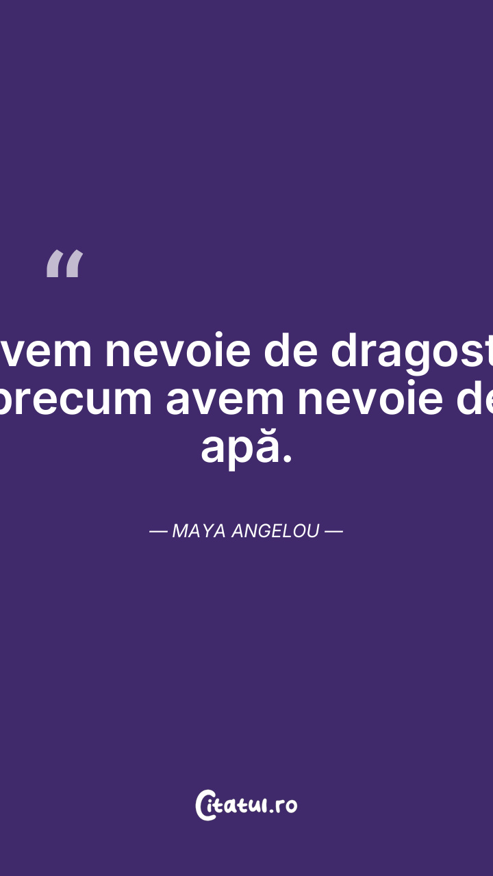 Avem nevoie de dragoste precum avem nevoie de apă. Maya Angelou