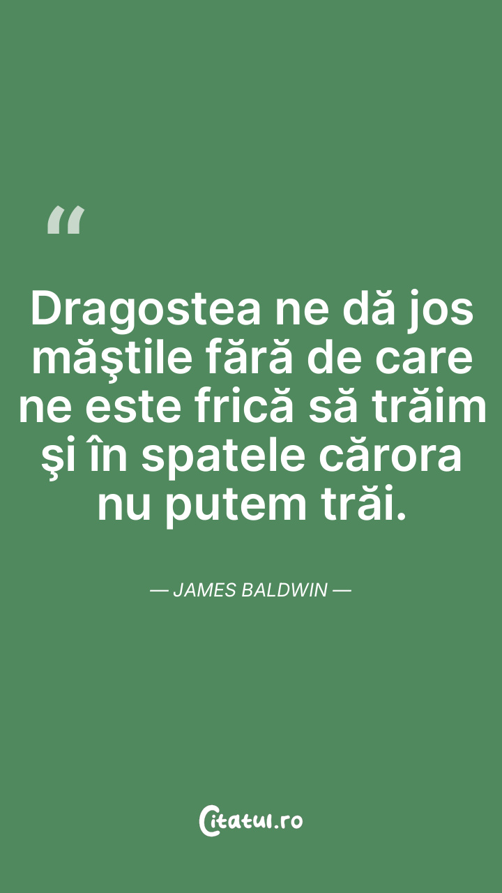 Dragostea ne dă jos măştile fără de care ne este frică să trăim şi în spatele cărora nu putem trăi. James Baldwin