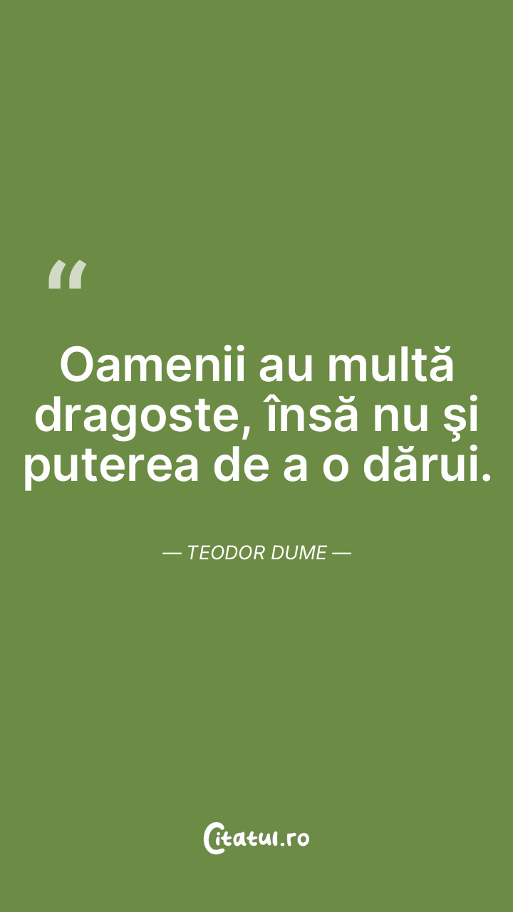 Oamenii au multă dragoste, însă nu şi puterea de a o dărui. Teodor Dume