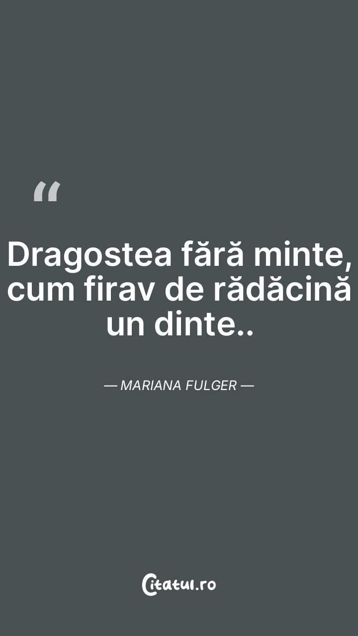 Dragostea fără minte, cum firav de rădăcină un dinte.. Mariana Fulger