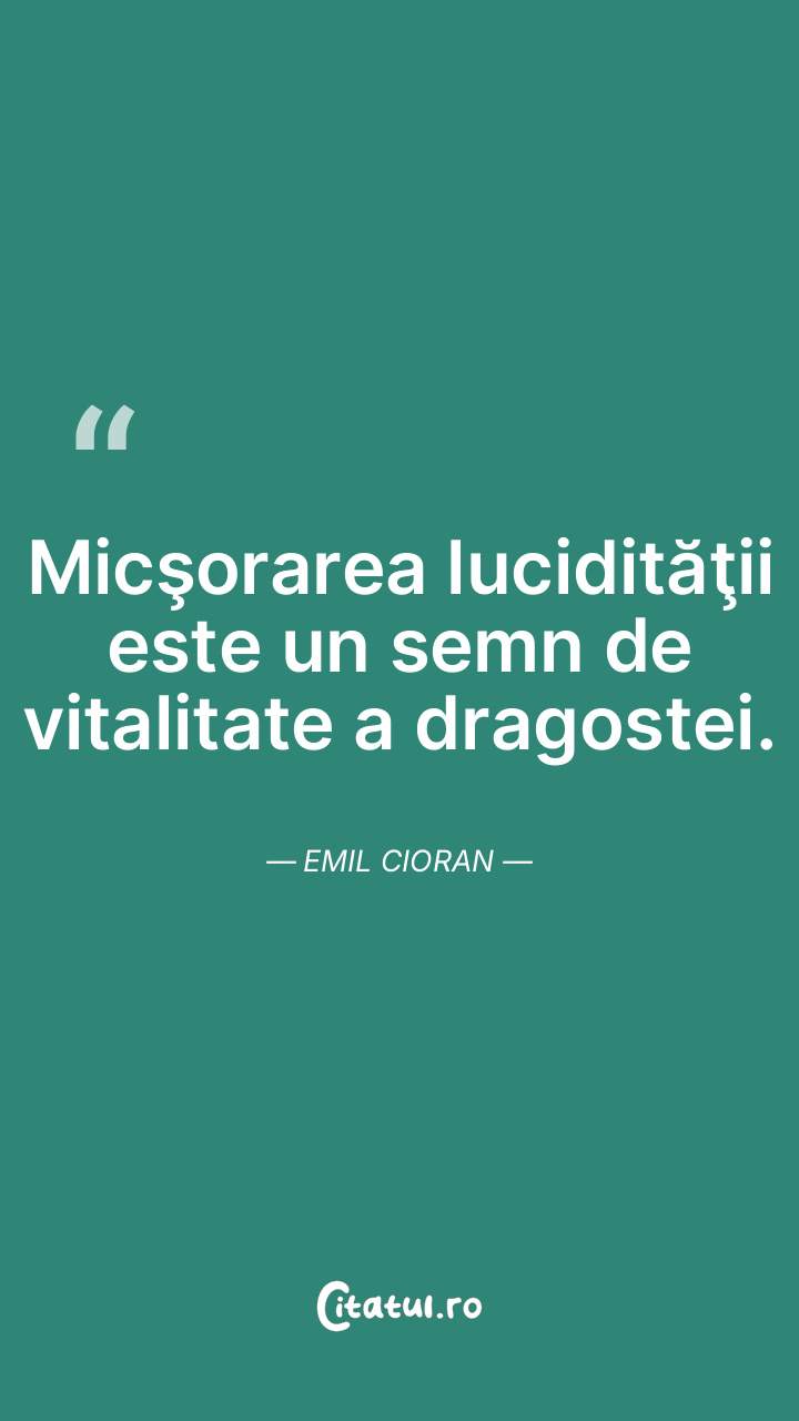 Micşorarea lucidităţii este un semn de vitalitate a dragostei. Emil Cioran