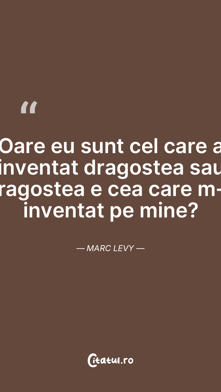 Oare eu sunt cel care a inventat dragostea sau dragostea e cea care m-a inventat pe mine? Marc Levy