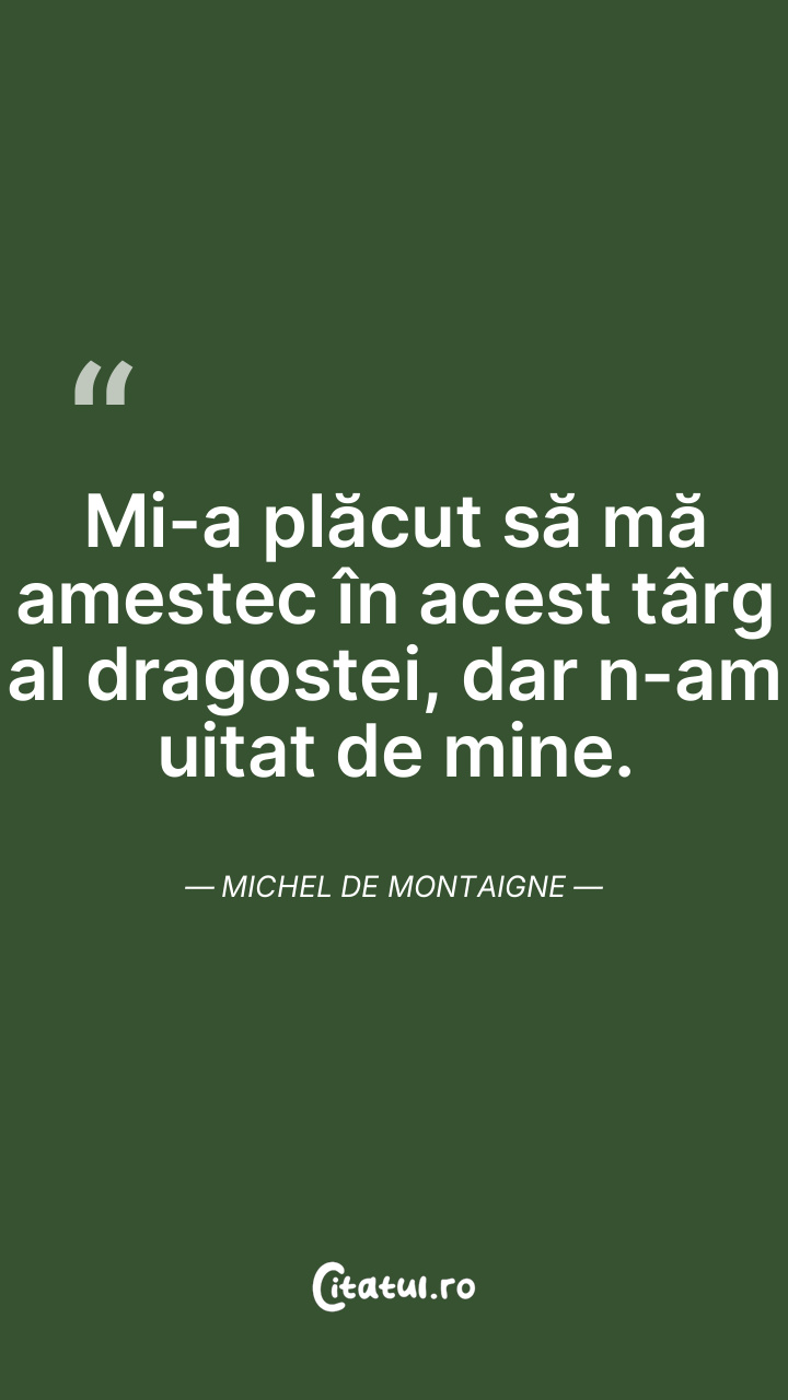 Mi-a plăcut să mă amestec în acest târg al dragostei, dar n-am uitat de mine. Michel de Montaigne