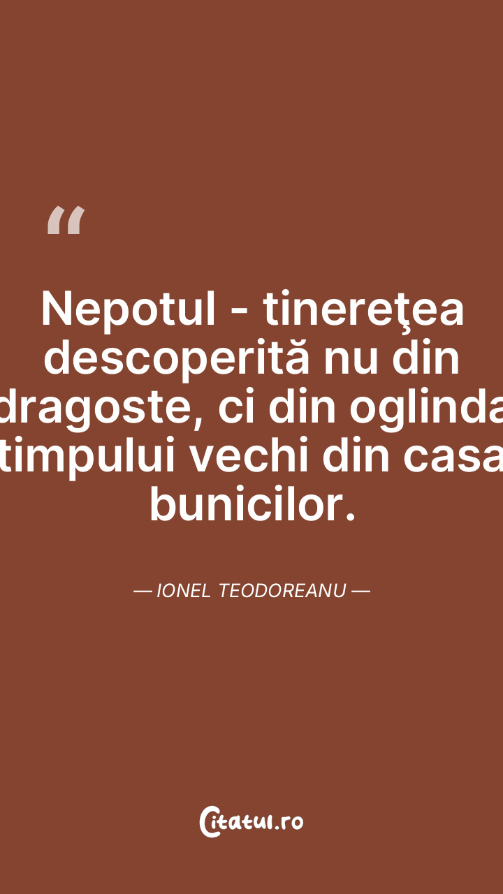 Nepotul - tinereţea descoperită nu din dragoste, ci din oglinda timpului vechi din casa bunicilor. Ionel Teodoreanu