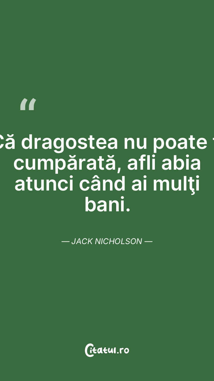 Că dragostea nu poate fi cumpărată, afli abia atunci când ai mulţi bani. Jack Nicholson