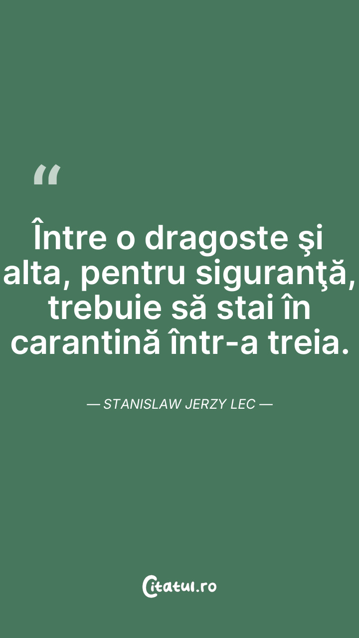 Între o dragoste şi alta, pentru siguranţă, trebuie să stai în carantină într-a treia. Stanislaw Jerzy Lec