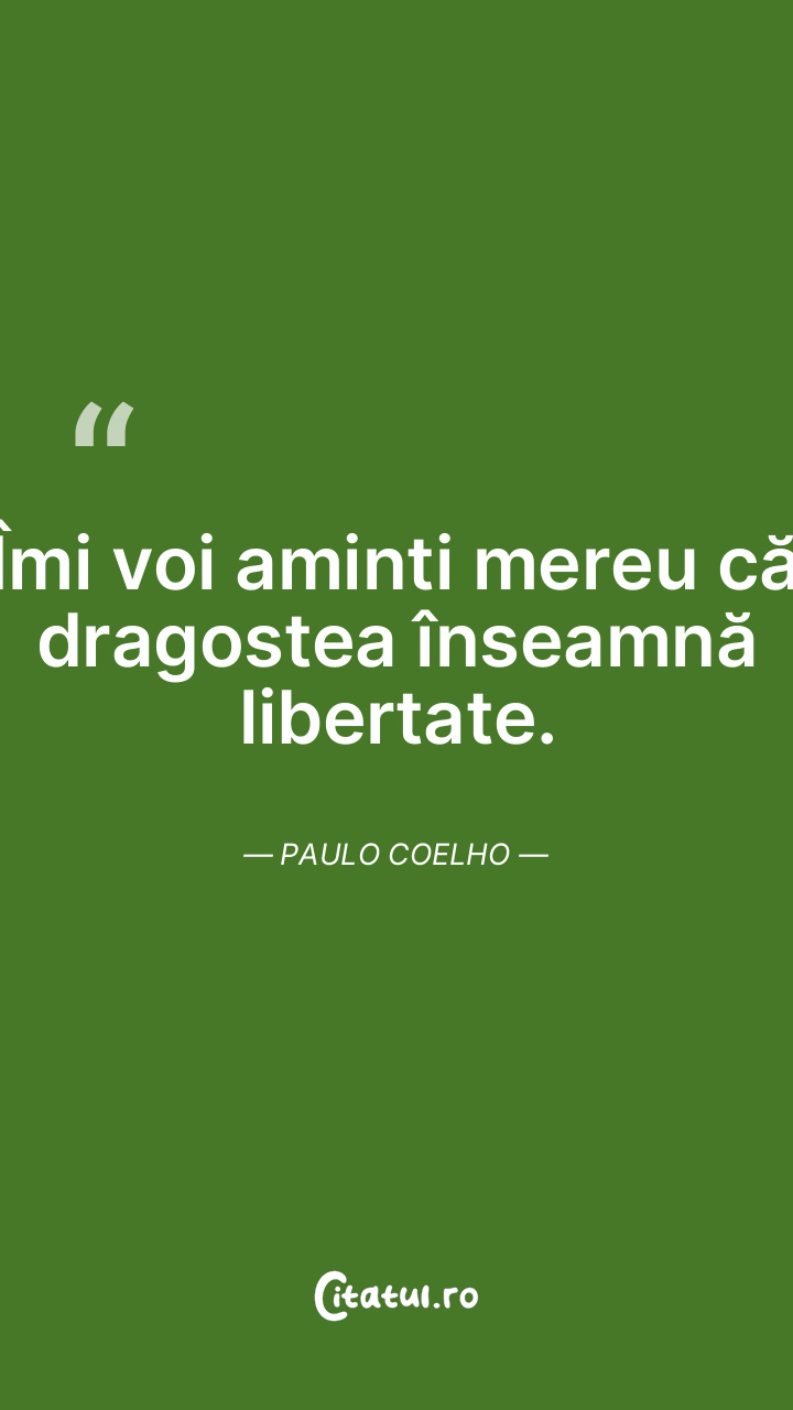 Îmi voi aminti mereu că dragostea înseamnă libertate. Paulo Coelho