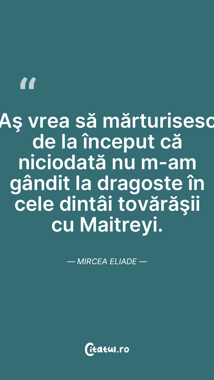 Aş vrea să mărturisesc de la început că niciodată nu m-am gândit la dragoste în cele dintâi tovărăşii cu Maitreyi. Mircea Eliade