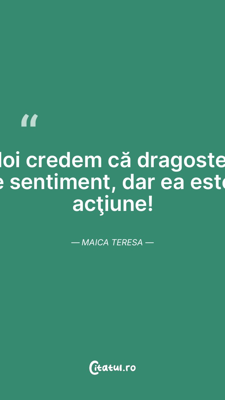 Noi credem că dragostea e sentiment, dar ea este acţiune! Maica Teresa