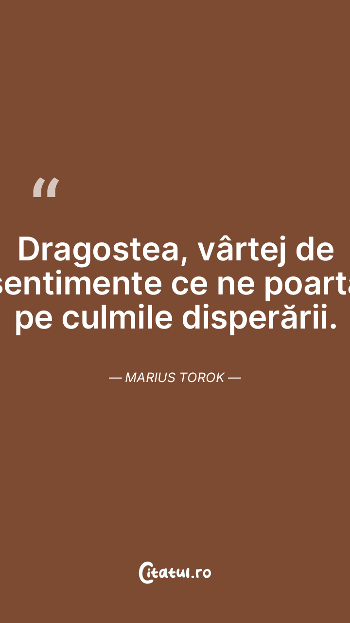 Dragostea, vârtej de sentimente ce ne poartă pe culmile disperării. Marius Torok