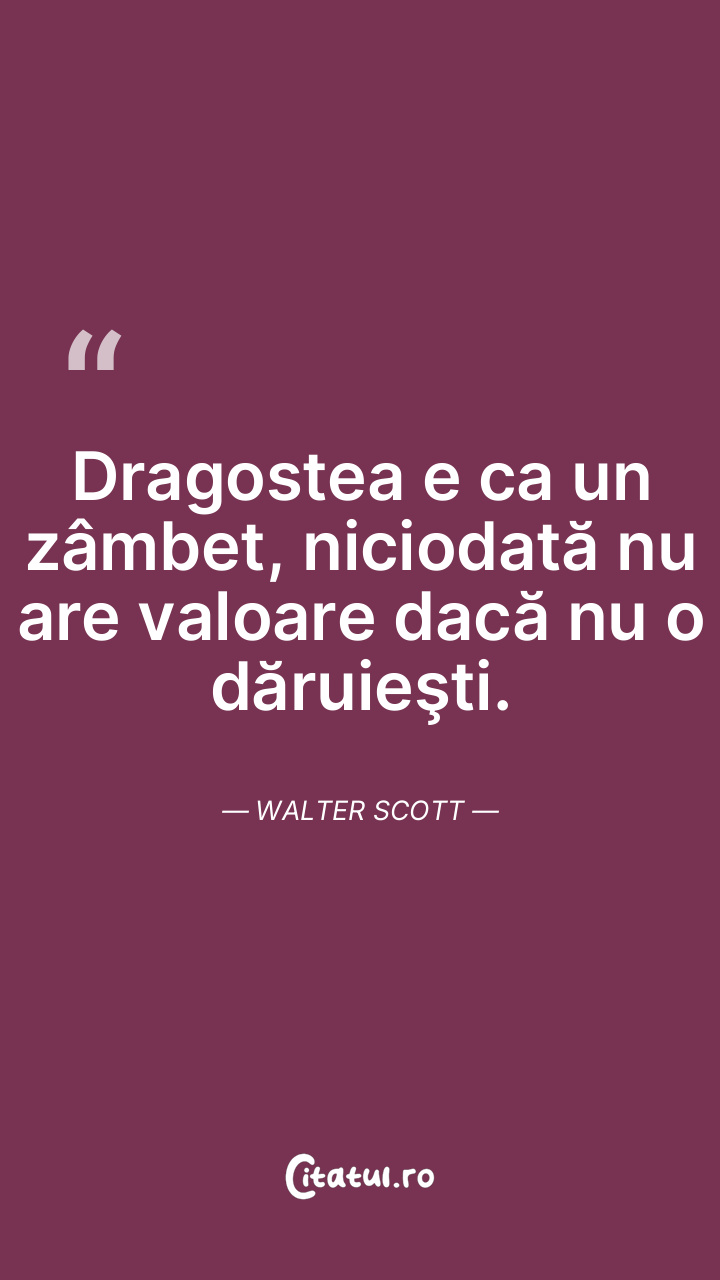 Dragostea e ca un zâmbet, niciodată nu are valoare dacă nu o dăruieşti. Walter Scott