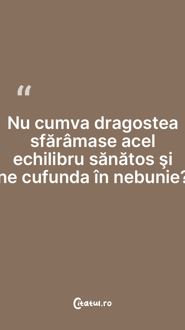 Nu cumva dragostea sfărâmase acel echilibru sănătos şi ne cufunda în nebunie?