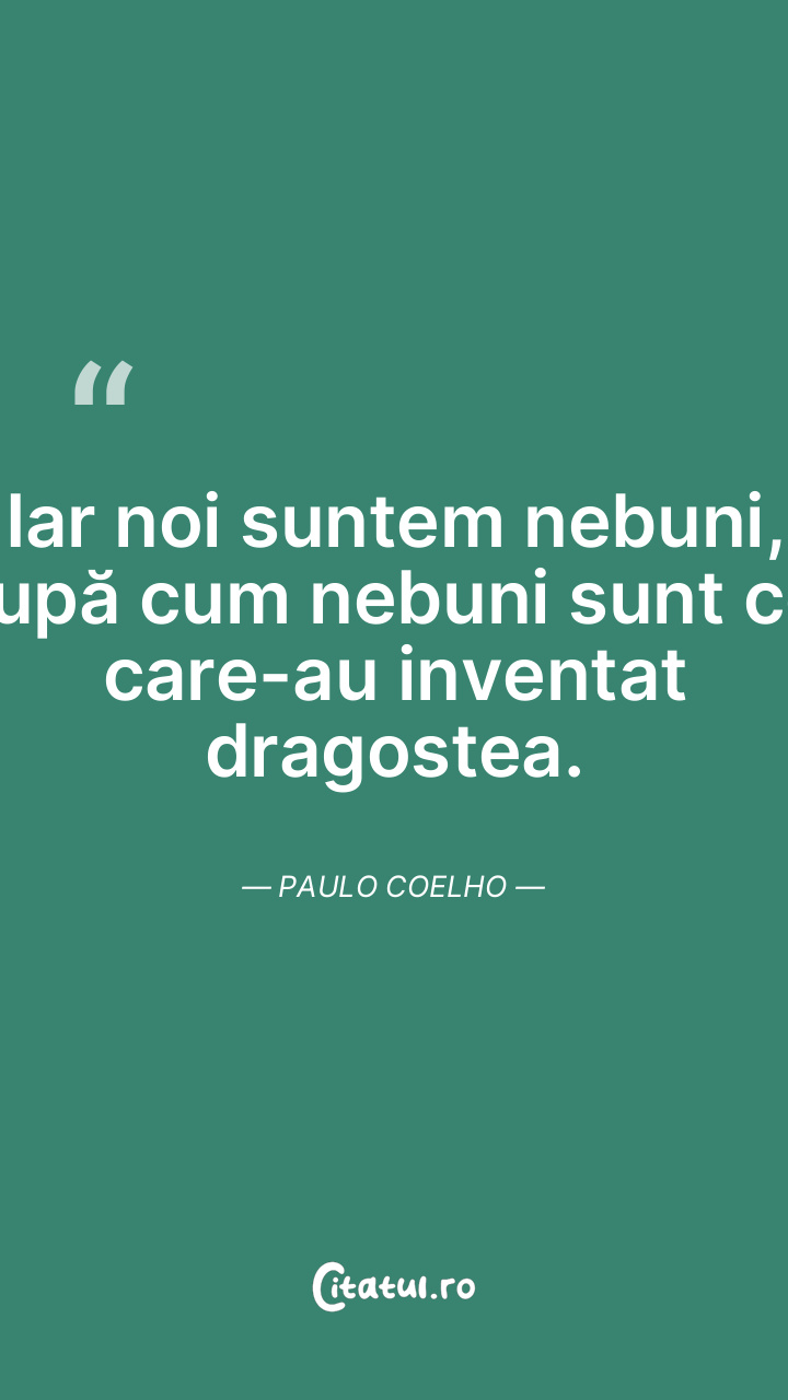 Iar noi suntem nebuni, după cum nebuni sunt cei care-au inventat dragostea. Paulo Coelho