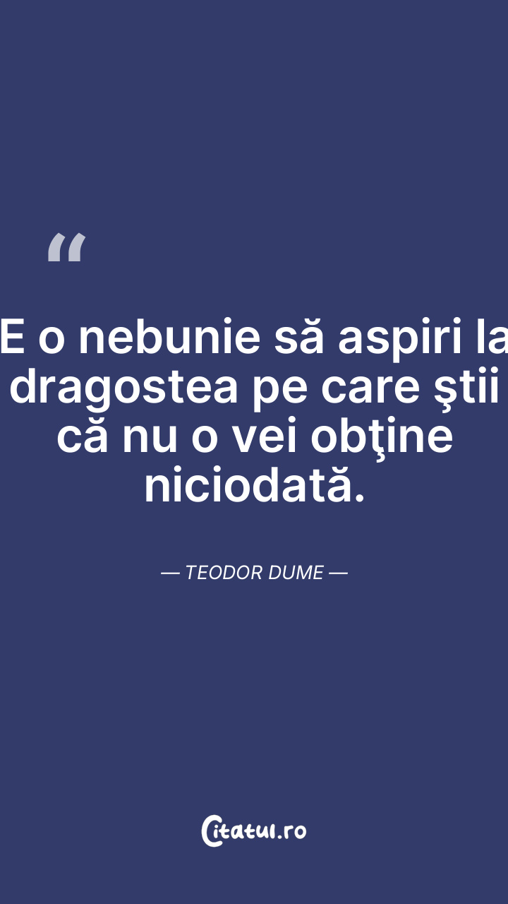 E o nebunie să aspiri la dragostea pe care ştii că nu o vei obţine niciodată. Teodor Dume