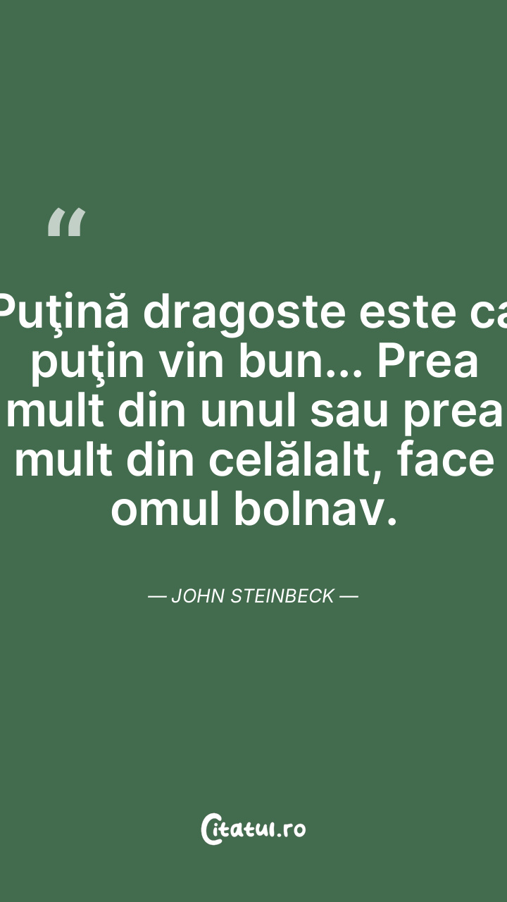 Puţină dragoste este ca puţin vin bun... Prea mult din unul sau prea mult din celălalt, face omul bolnav. John Steinbeck