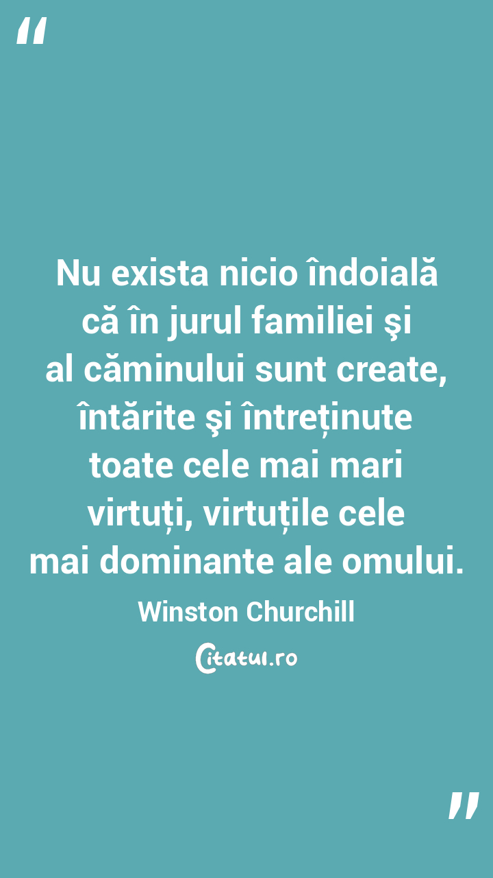 Nu exista nicio îndoială că în jurul familiei şi al căminului sunt create, întărite şi întreţinute toate cele mai mari virtuţi, virtuţile cele mai dominante ale omului. Winston Churchill