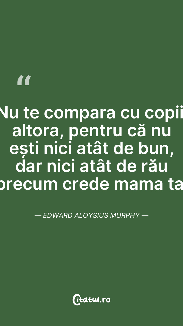 Nu te compara cu copiii altora, pentru că nu ești nici atât de bun, dar nici atât de rău precum crede mama ta. Edward Aloysius Murphy