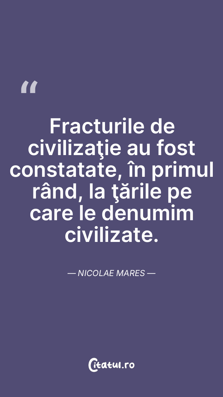 Fracturile de civilizaţie au fost constatate, în primul rând, la ţările pe care le denumim civilizate. Nicolae Mares