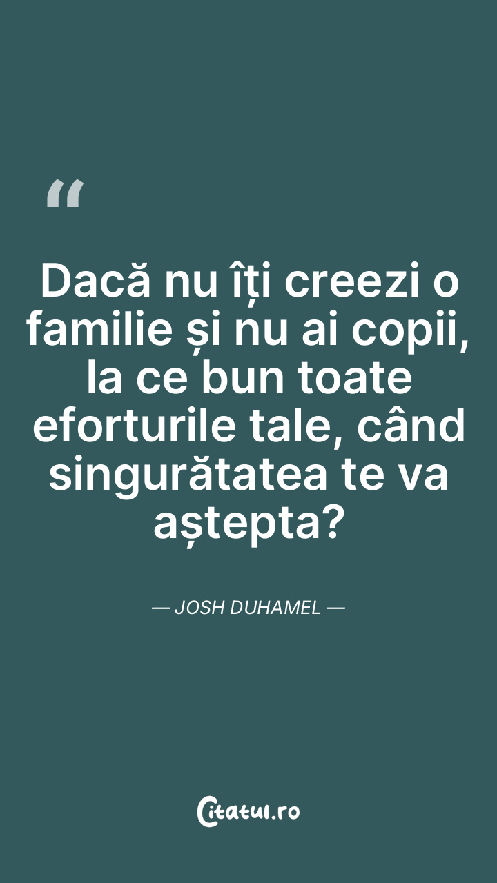 Dacă nu îți creezi o familie și nu ai copii, la ce bun toate eforturile tale, când singurătatea te va aștepta? Josh Duhamel